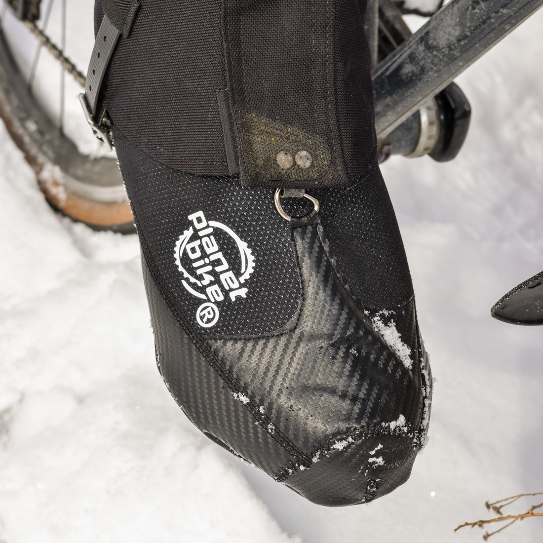 - Full shoe covers utilize windproof fabric and microfleece lining for optimal wind protection and warmth
