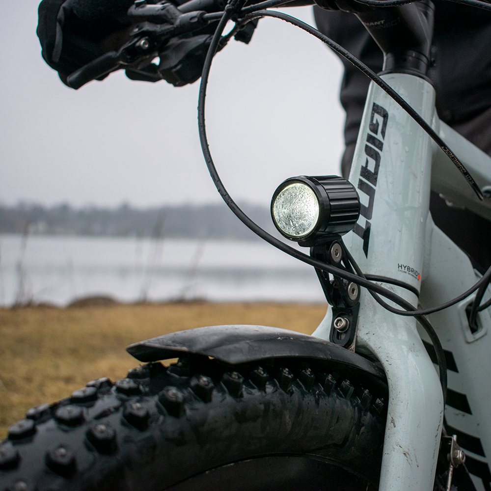 - Front Fork Crown Mounted - Securely mounts to your E- bike's fork crown with mounting bracket with two robust pivot points that allow for beam angle adjustability.