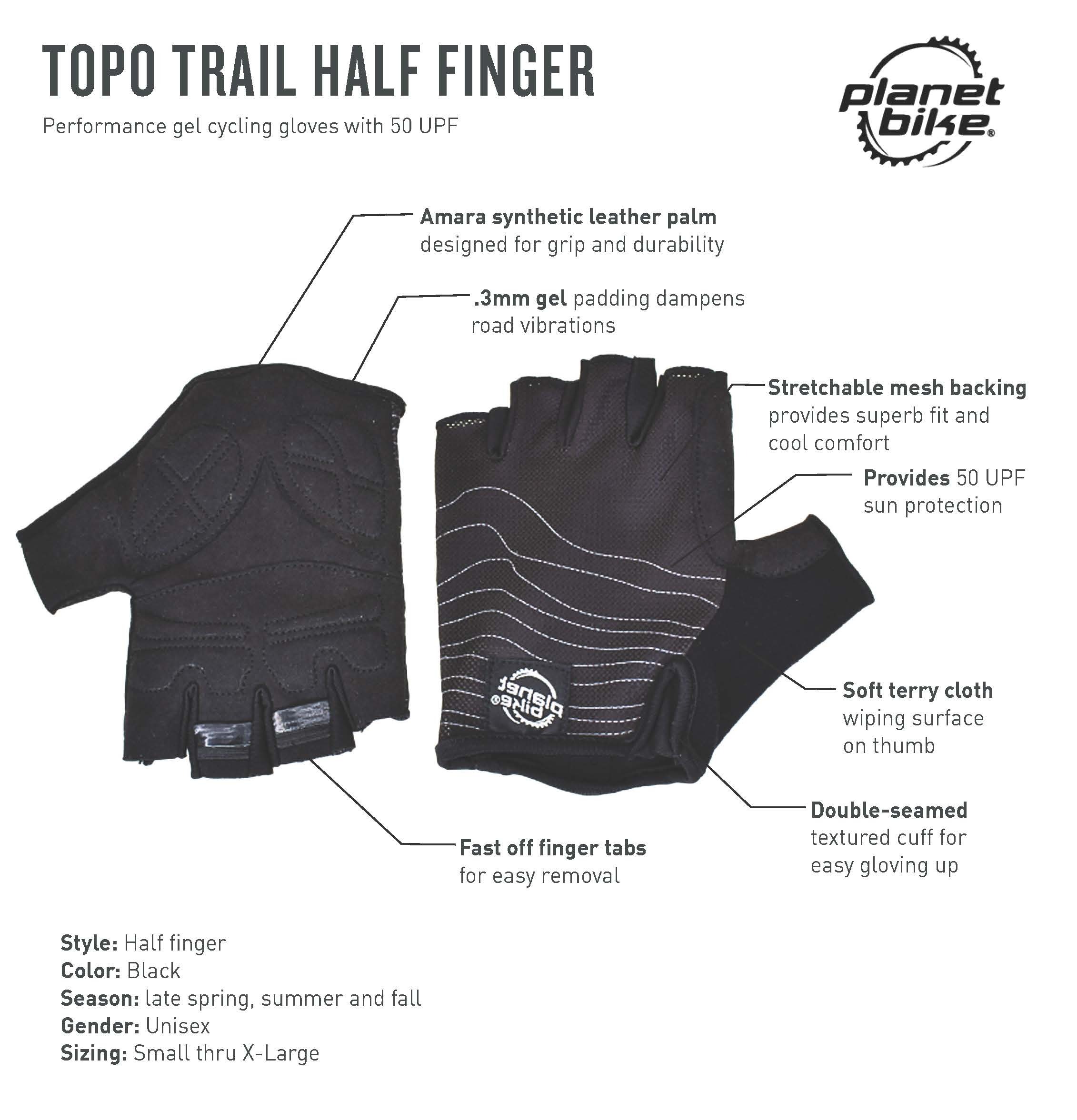 Minimal, breathable, and built for all-day rides, the Topo Trail half finger gloves fit so well you'll forget they are wearing them.
