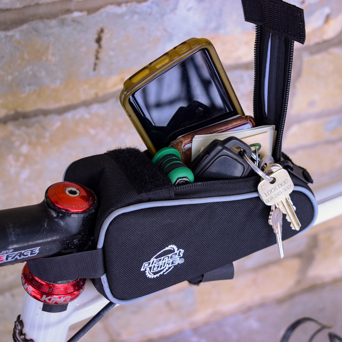 Keep your phone, snacks and other gear close at hand with our top tube mounted Snack Sack bike bag. It installs quickly and the dual zipper makes opening and closing a breeze.